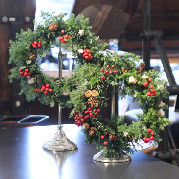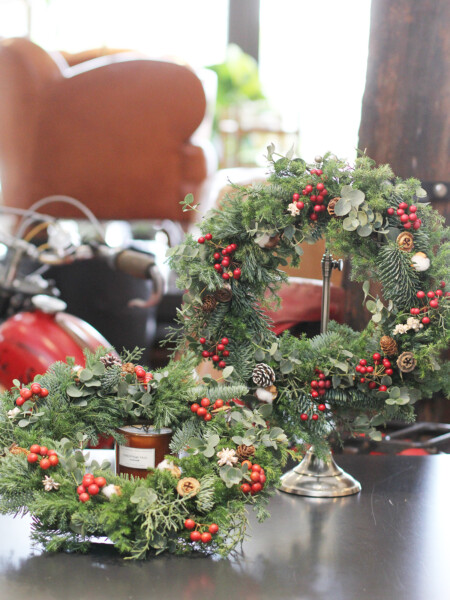 昨年につづき、お問合せを多くいただいたクリスマスリースやスワッグ作り。