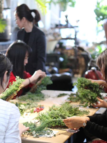 今回ご参加くださったお客さまは、リース作りやお花のアレンジが始めての方も多く、