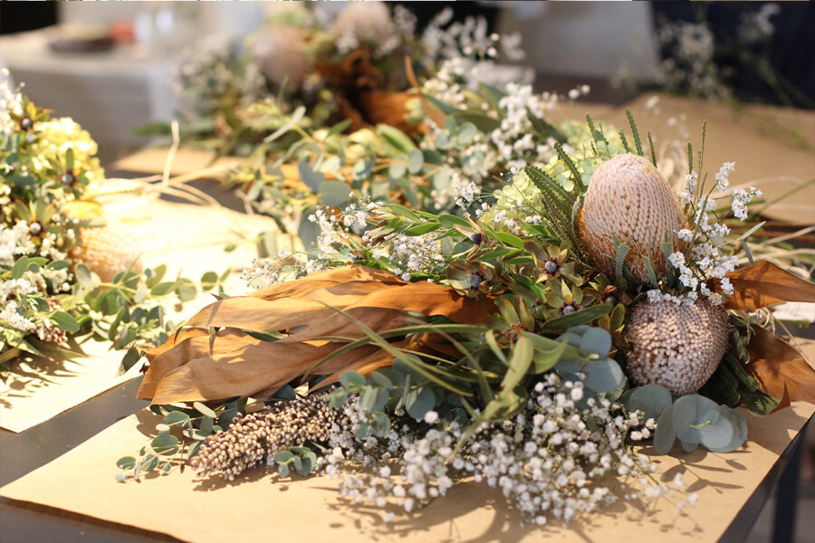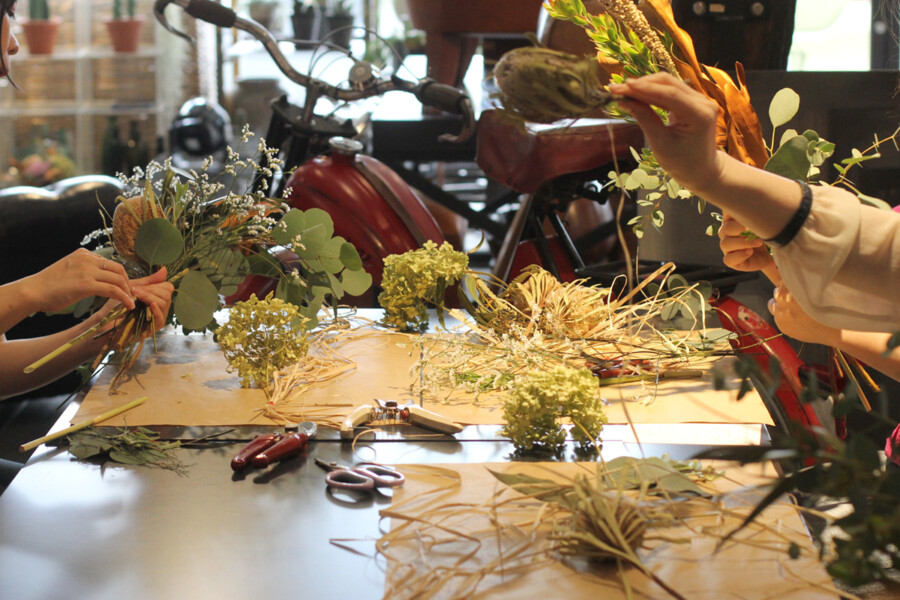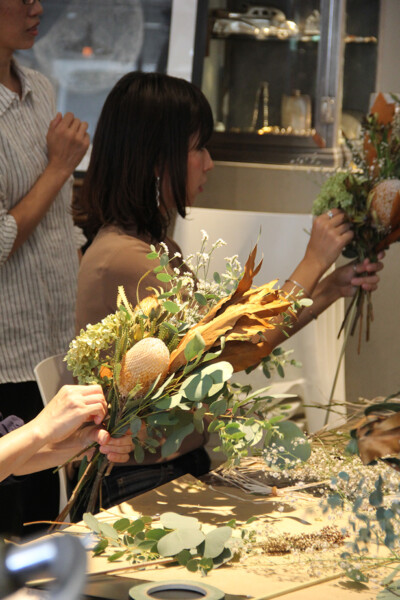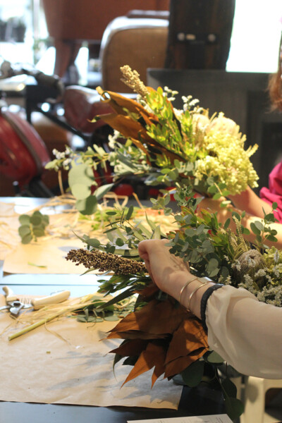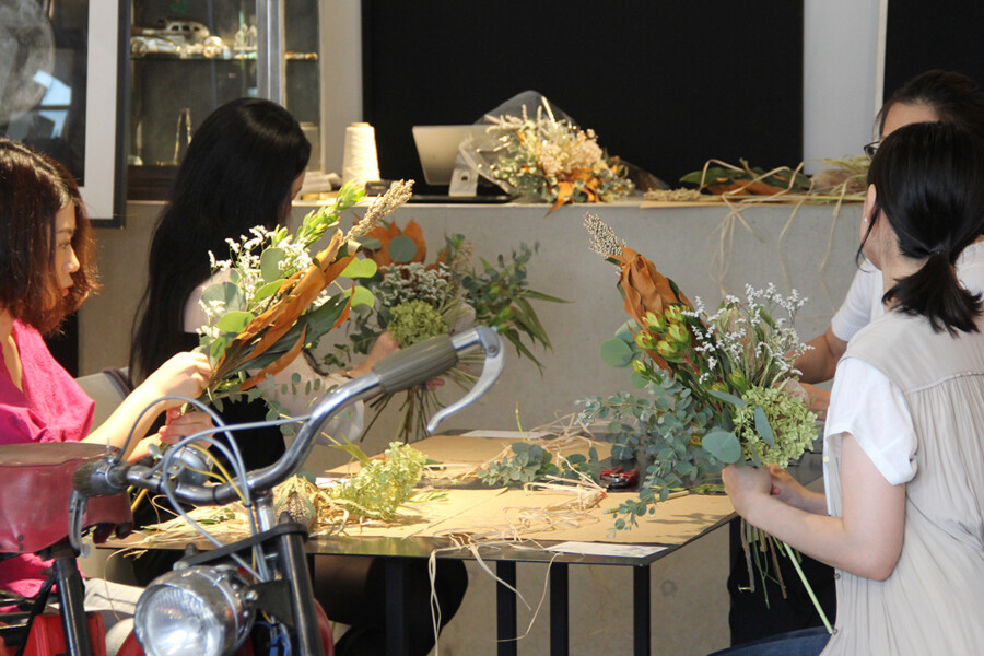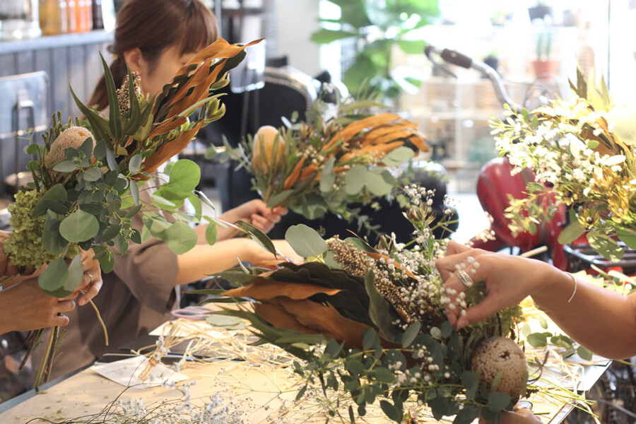 9月5日と11日に開催したドライフラワーとフレッシュフラワーをたっぷりと使った存在感のある大きなブーケ作り。