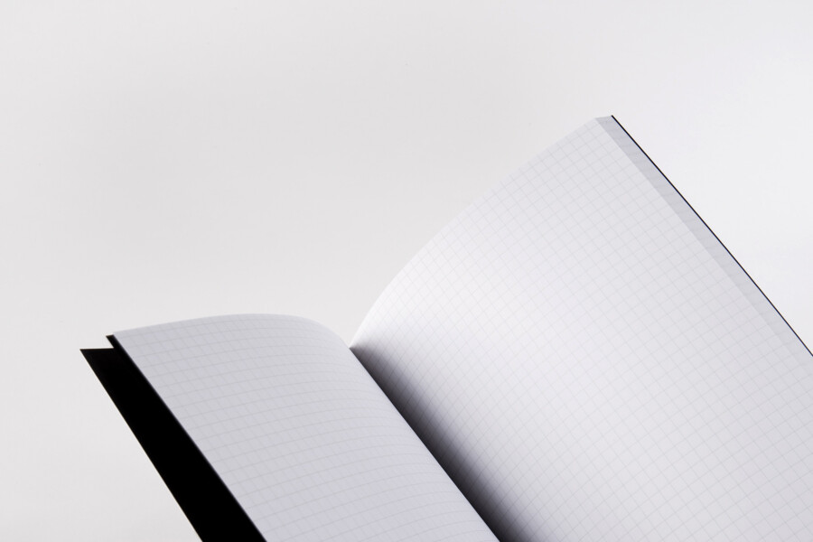 5mmグリッドのペーパーを白の糸を使い仕上げた糸綴じのノートです。